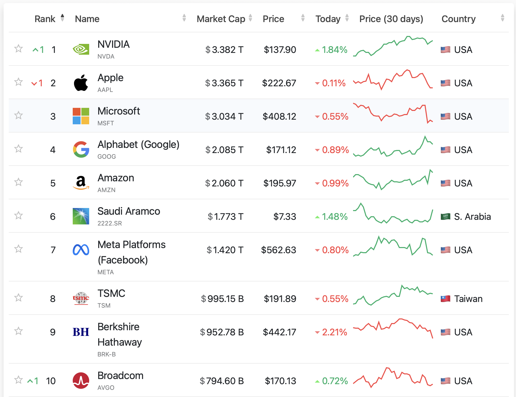 작년에 이어 올해에도 증시를 주도하며 상승세를 이어오던 엔비디아, NVDA는 오늘 결국 애플을 넘어서며 전세계 시총 1위를 달성했다. 2020년 시총 순위 24계단을 올라 17위로 올랐던 것을 시작으로 22년에는 7위, 올해 초에는 5위를 하더니 결국 1위까지 거머쥐었다! 조금 더 빨리 이러한 변화의 물결을 알고 투자했더라면 좋았겠지만 그래도 올해 중순부터 달리는 말에 올라탄 결과 나도 어느정도는 엔비디아의 상승세를 누리고 있다. 문득 줄곧 믿음을 주며 투자해오고 있는 디즈니의 시총 순위가 궁금해져 확인해보았다. 22년에 22위였던 디즈니, DIS 는 23년 초에 47위, 올해 초에 54위로 밀리더니 이제는 81위까지 떨어졌다. 올해 9월 디즈니에 관한 기사를 찾아보며 '이젠 많은 불확실성이 해결되었으..